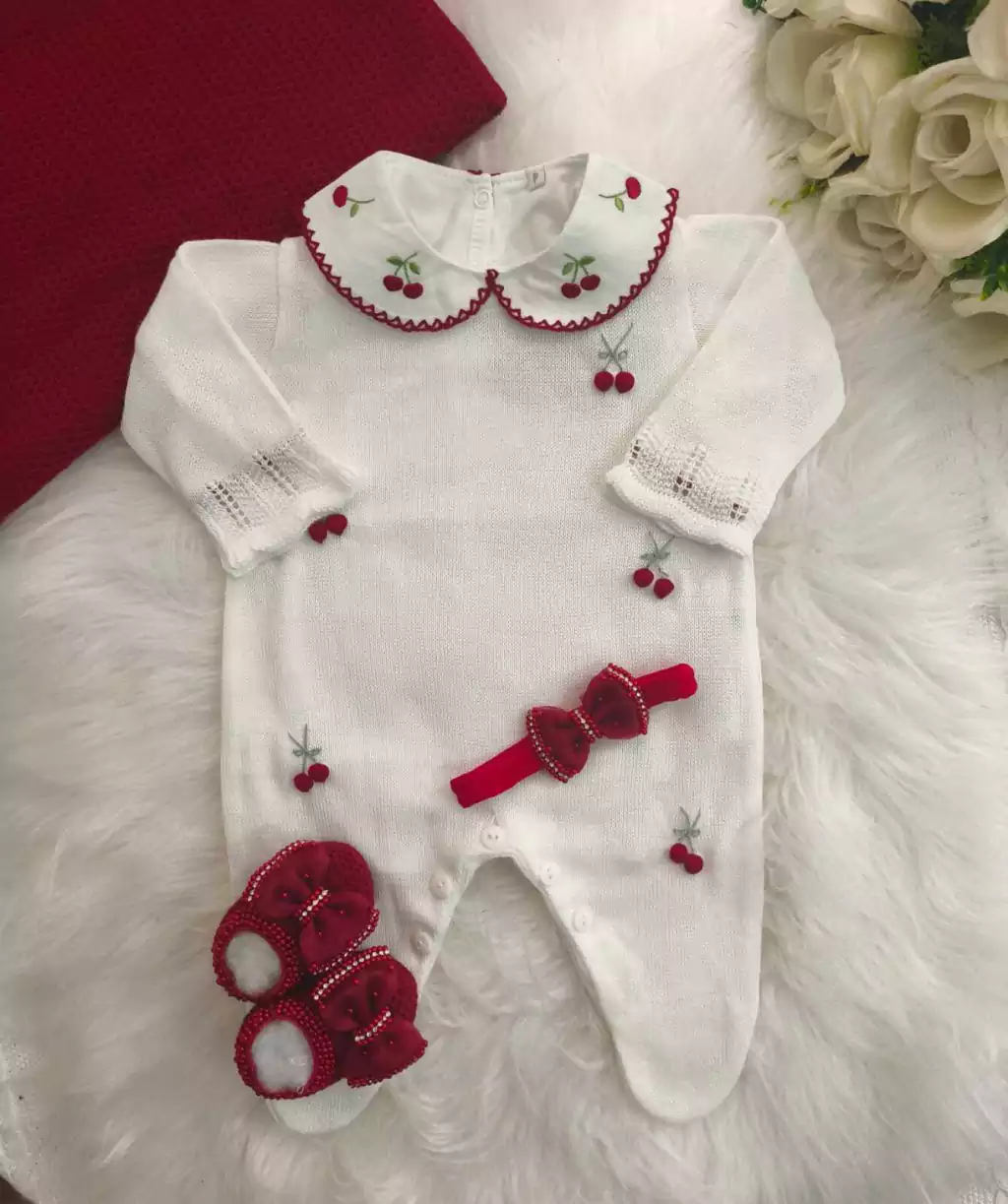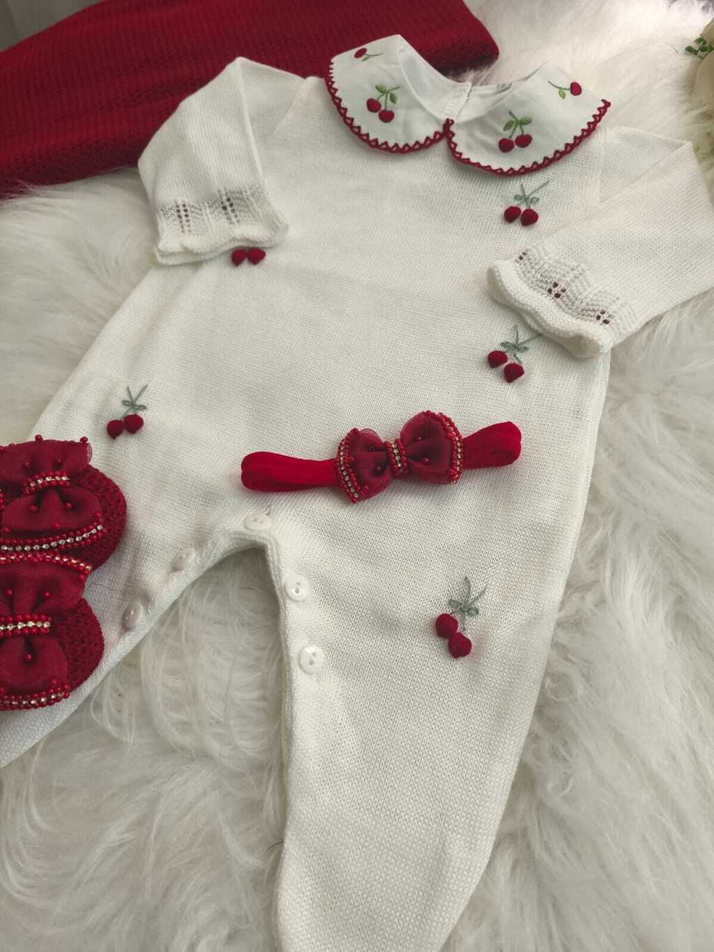 Garanta já o seu Kit Macacão Cerejinha Completo com Manta e proporcione ao seu pequeno todo o carinho e elegância que ele merece em suas primeiras aventuras!