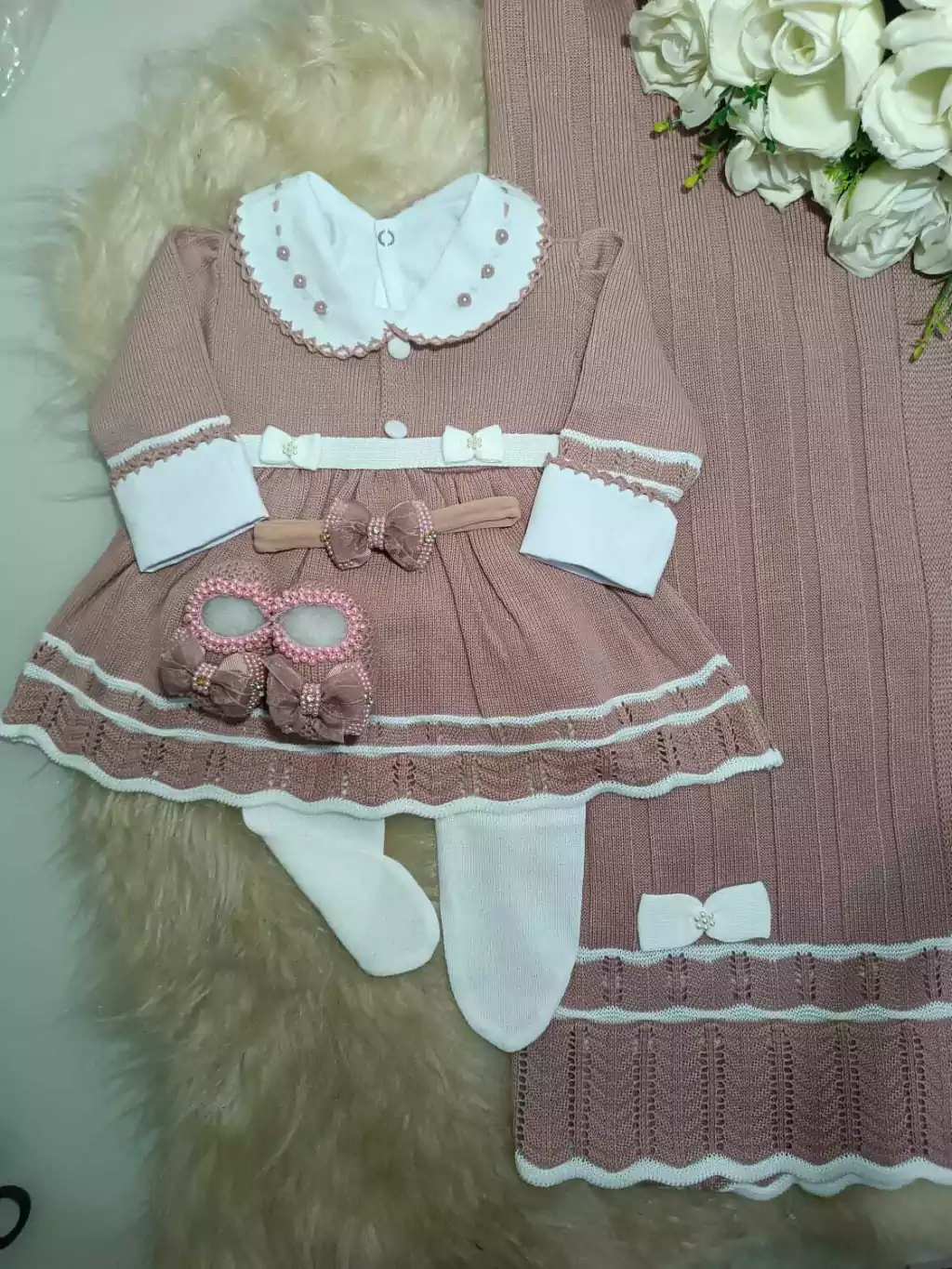 O Kit Maternidade Rodado Carla é a escolha perfeita para dar as boas-vindas ao seu recém-nascido. Composto por um lindo vestido, calça e uma manta aconchegante, este kit é feito em tricô 100% antialérgico, garantindo o máximo conforto e segurança para a pele sensível do seu bebê.