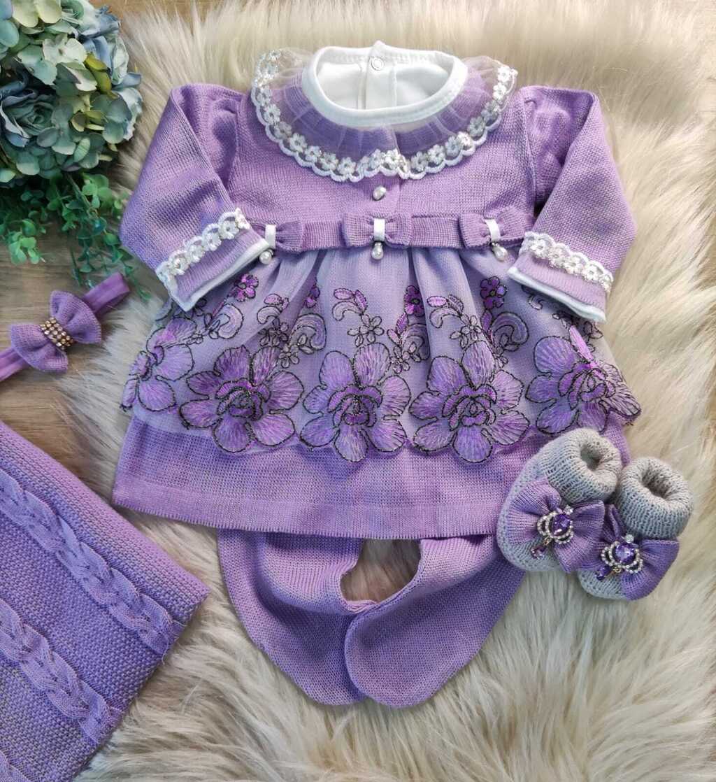 O Kit Maternidade Renda Luxo é a escolha perfeita para quem busca um conjunto sofisticado, confortável e totalmente seguro para os primeiros momentos do seu recém-nascido. Composto por vestido, calça e manta, todas as peças são confeccionadas em tricô 100% antialérgico, garantindo proteção máxima para a pele sensível do bebê.