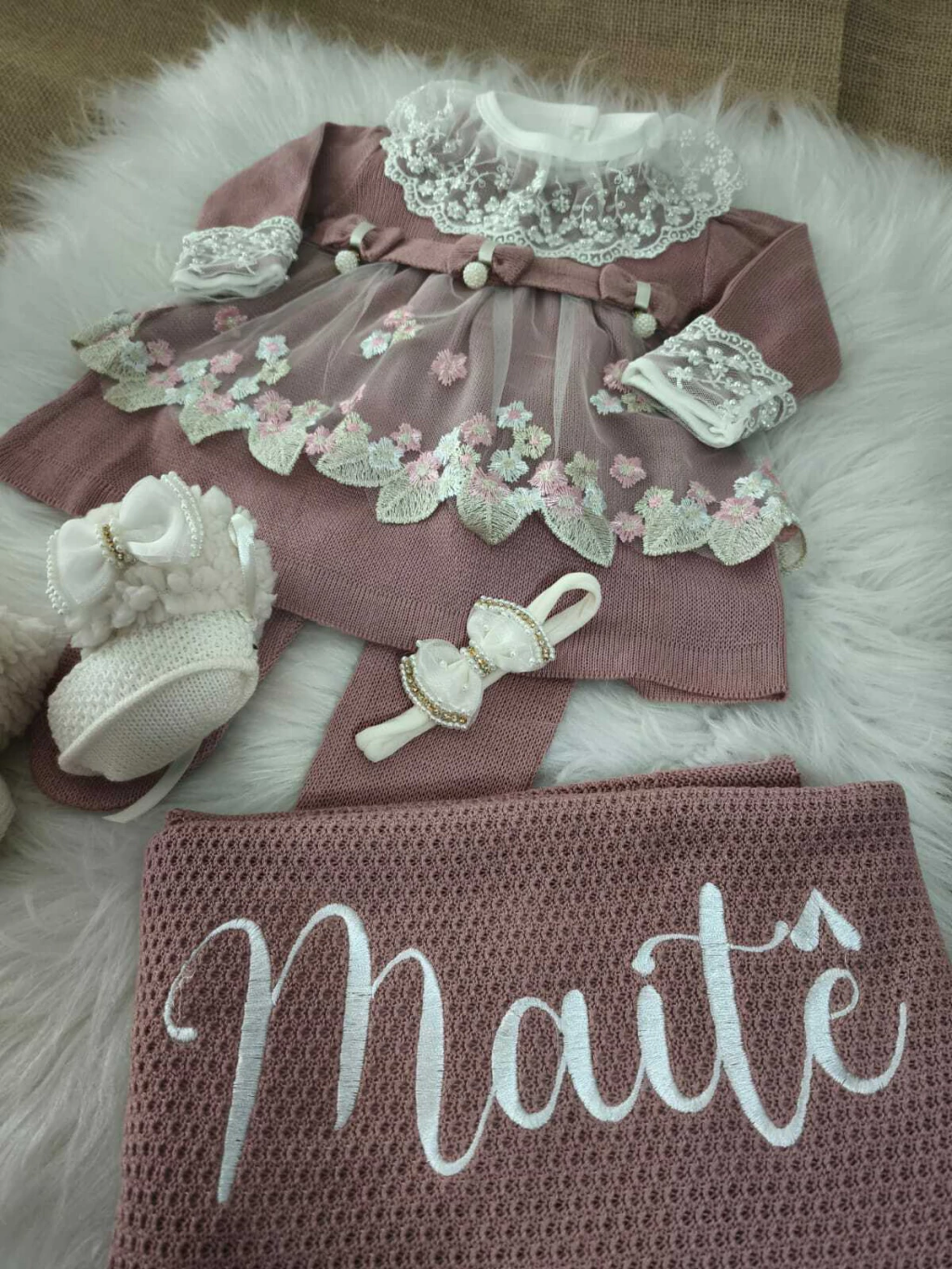 • Vestido de renda em tricô: delicado e elegante, ideal para ocasiões especiais e para deixar seu bebê ainda mais encantador.