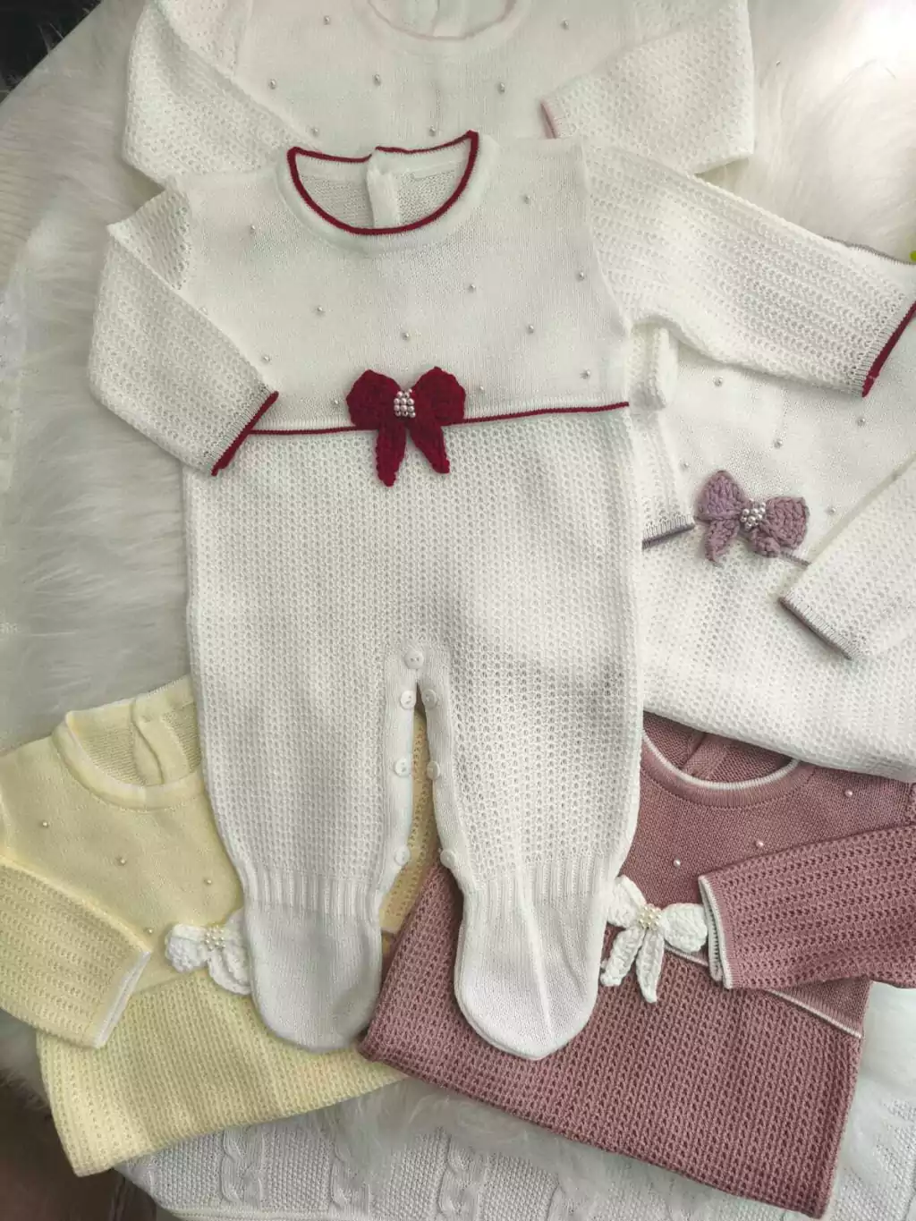 Garanta já o seu Macacão Laço e ofereça à sua pequena o melhor em conforto, estilo e qualidade, com a delicadeza que só o tricô bordado com pérolas pode proporcionar!